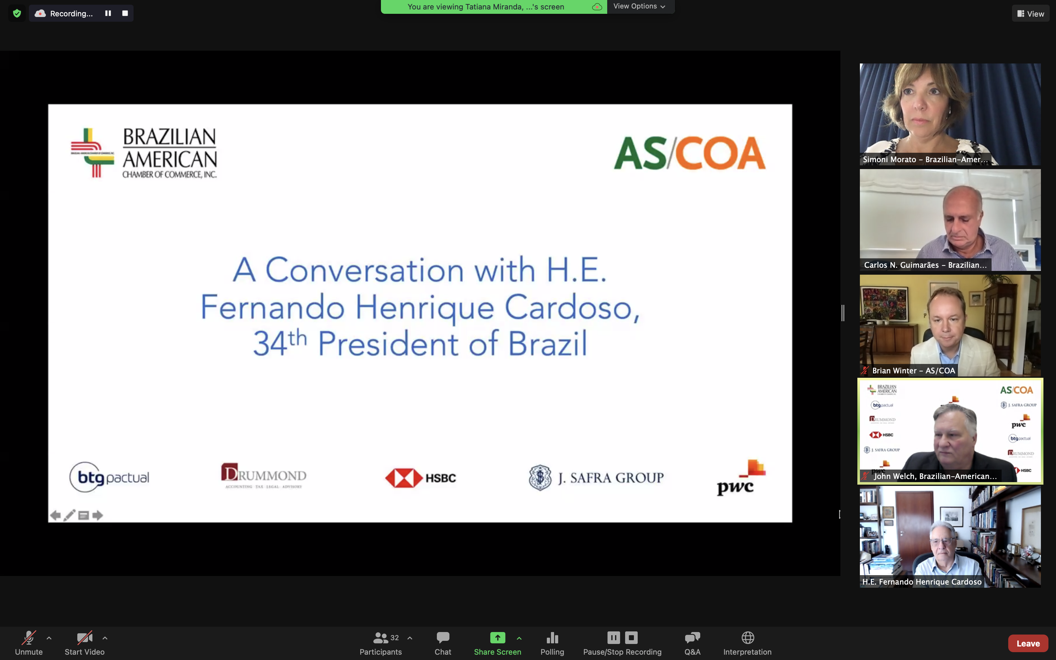 As we race to the 2022 presidential and general elections, jockeying for positions of potential candidates is well underway, both at the party and individual levels. The Chamber has the honor of hosting 34th President of Brazil Fernando Henrique Cardoso to discuss these and other eventualities. Dr. Cardoso, after a long academic and political career, was elected President in 1994 and served two terms, from 1995 to 2002. He oversaw the consolidation of the Real Plan, organized a massive privatization program, and guided Brazil through very turbulent times. He remains a key figure in national politics and is one of the main strategists for the Brazilian Social Democracy Party (PSDB). He recently published the latest of several books – An Intellectual in Politics: A Memoir (Um Intelectual na Política: Memórias). Please join us for this valuable discussion with His Excellency Fernando Henrique Cardoso.