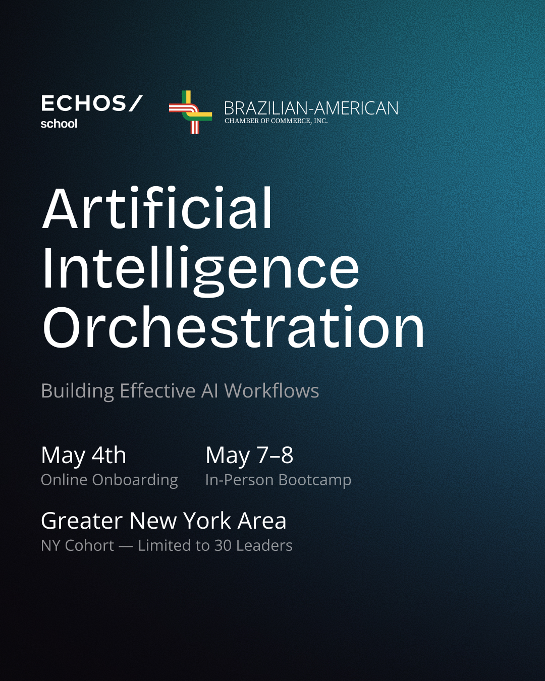 The Brazilian-American Chamber of Commerce is proud to serve as an institutional partner of the "Artificial Intelligence Orchestration - Building Effective AI Workflows" organized by Echos.