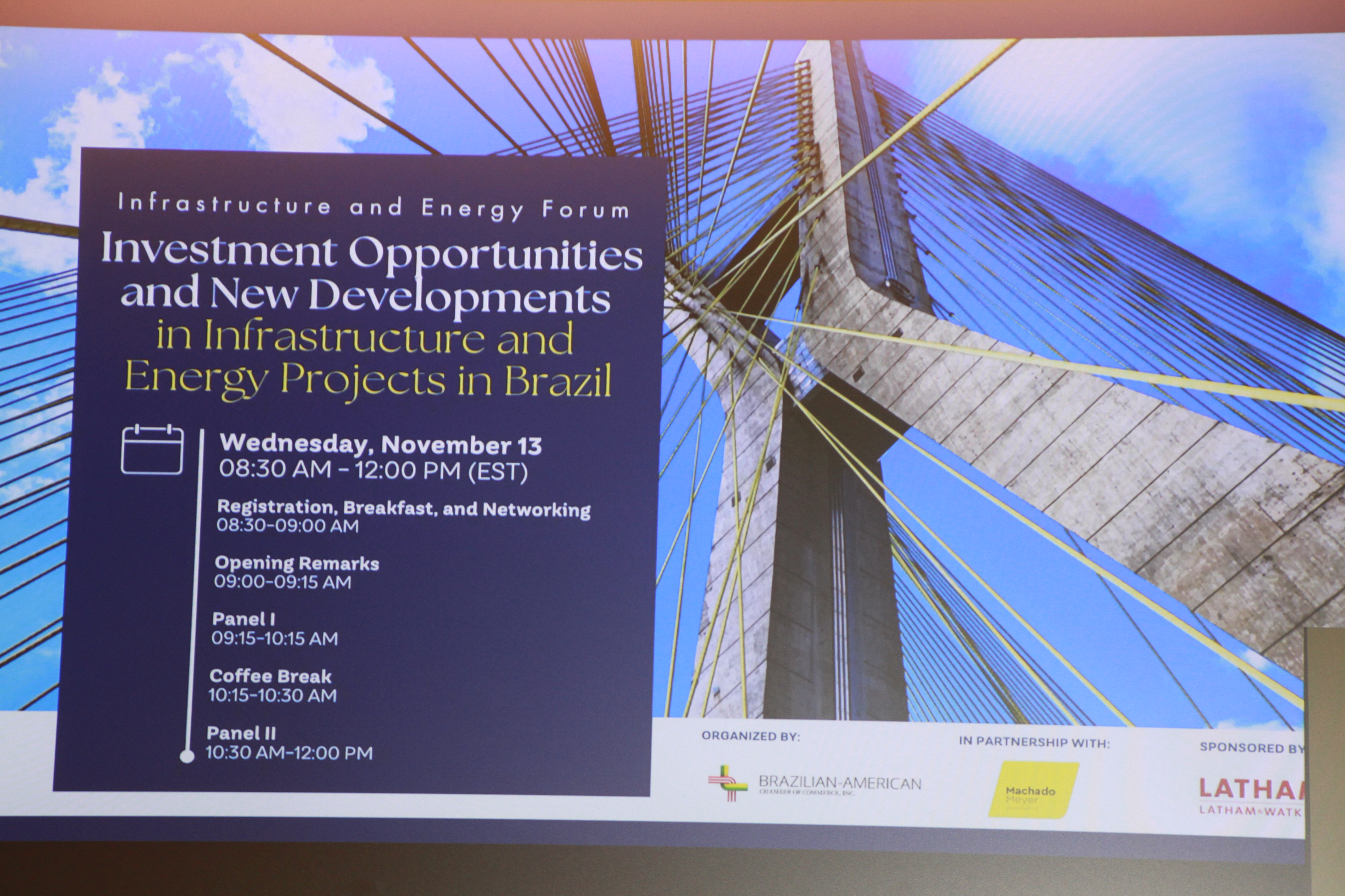 To examine these opportunities, the Brazilian-American Chamber of Commerce, in partnership with Machado Meyer Advogados and Latham & Watkins LLP, has gathered top representatives of Tesouro Nacional (the National Treasury of Brazil), Programa de Parcerias de Investimentos – PPI (Investment Partnership Program), the Inter-American Development Bank (IDB), financial institutions, and world-class investors, who discussed recent developments and new trends in infrastructure and energy projects in Brazil.