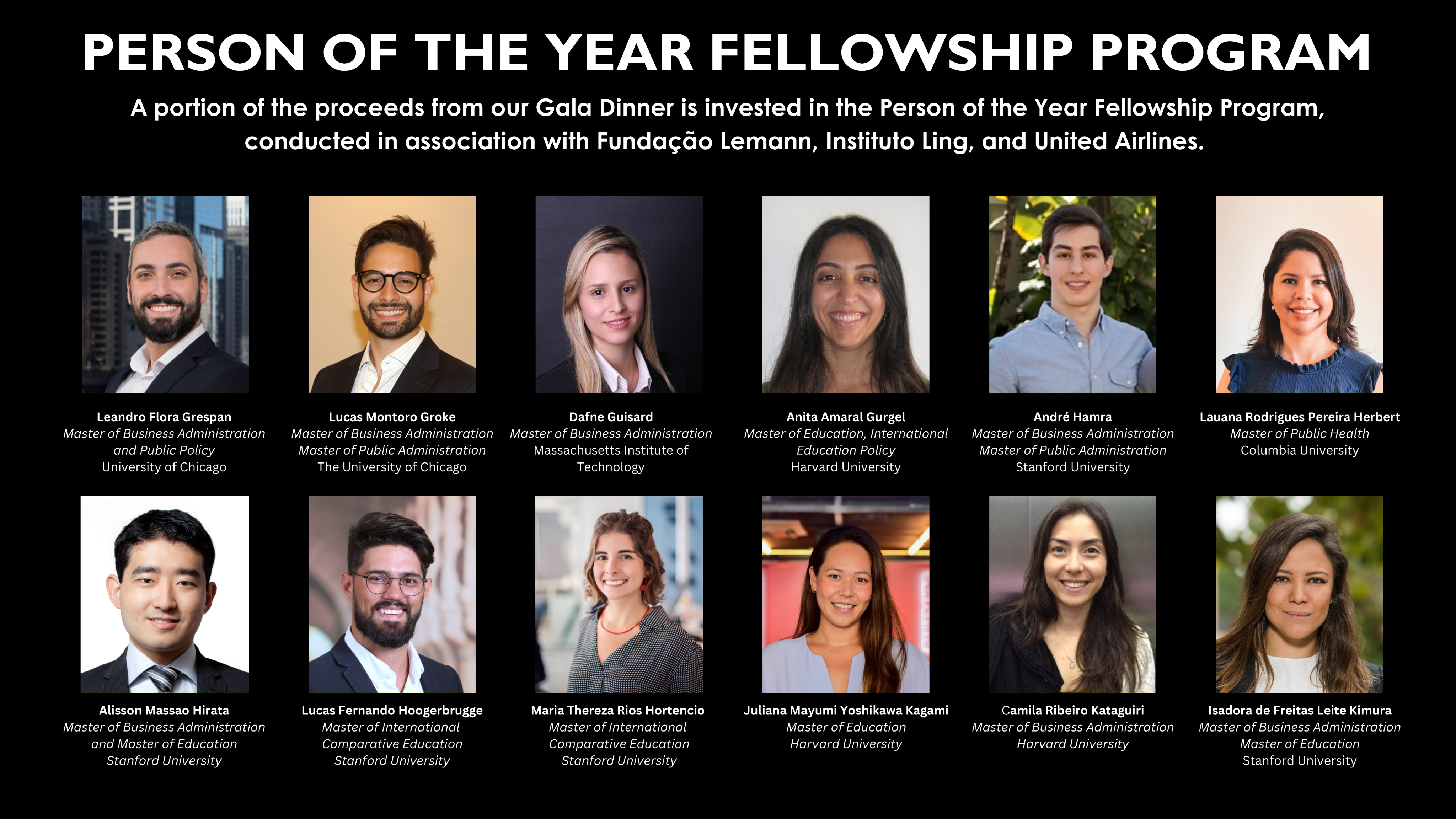 The Board of Directors of BrazilCham, in conjunction with the POY Fellowship Committee, then makes the final decision on which candidates will be awarded with fellowships, based on a rigorous application and interview process.
